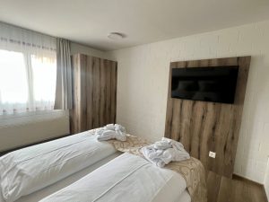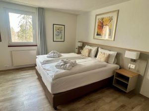 Die Doppelzimmer bieten ausserdem ein Smart TV mit Netflix, Prime-Video & YouTube Zugang (Eigenanmeldung) sowie kostenfreies WLAN.